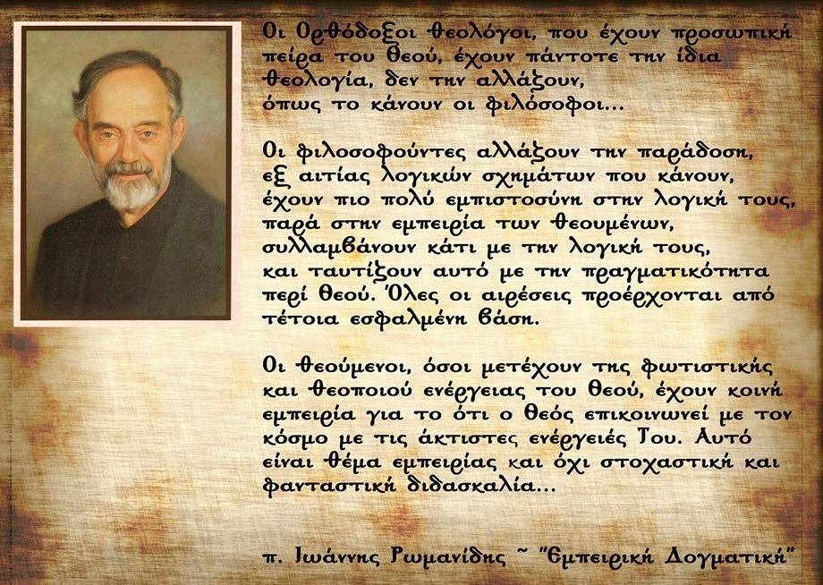 ακαδημαϊκής φιλοσοφίας, αλλά τήν γνήσια εμπειρική θεολογία τής